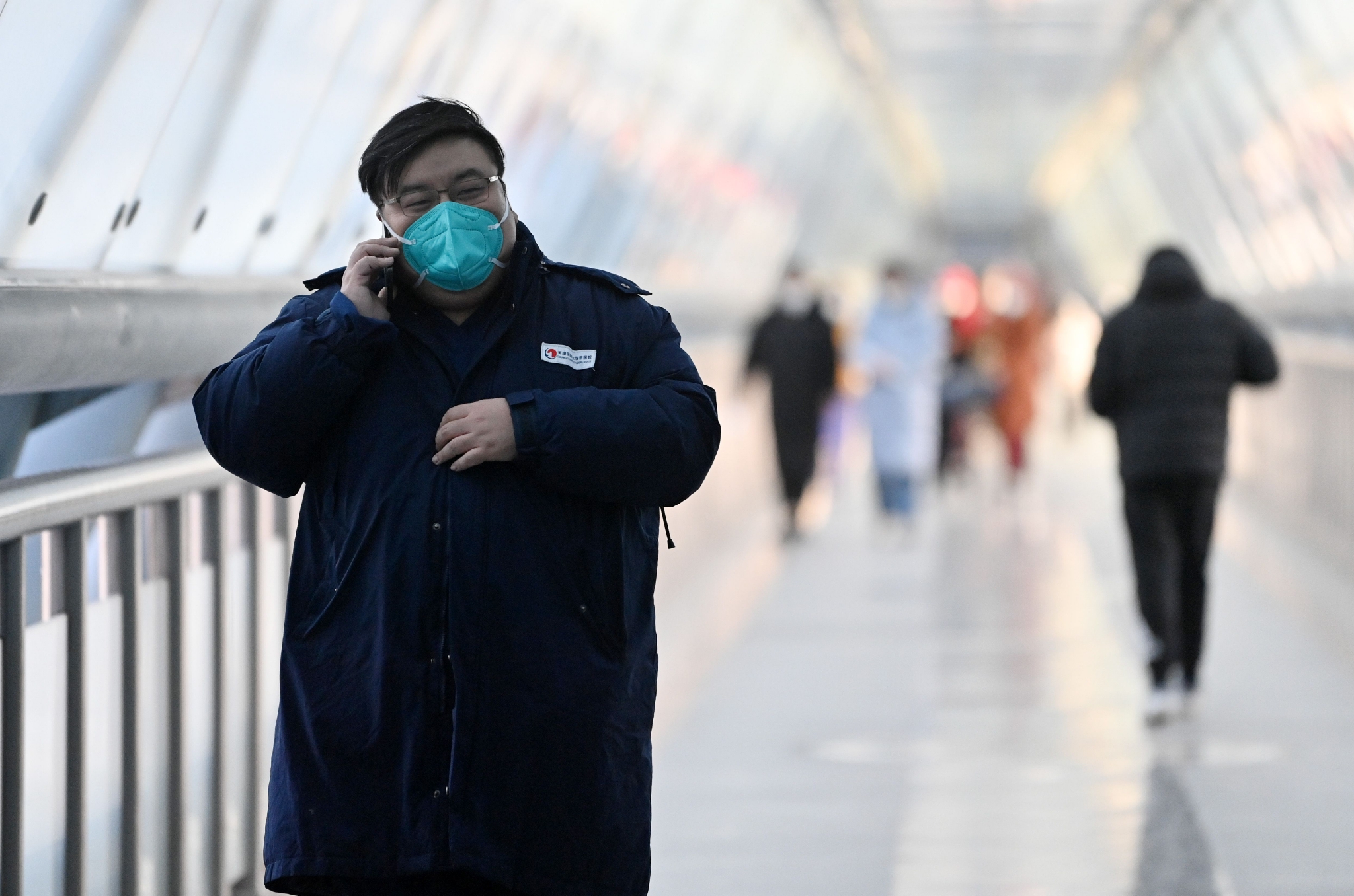 刘洋在天津医科大学总医院边走边接听工作电话(1月18日摄)。新华社记者 李然 摄