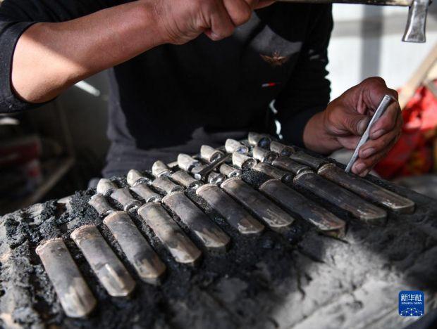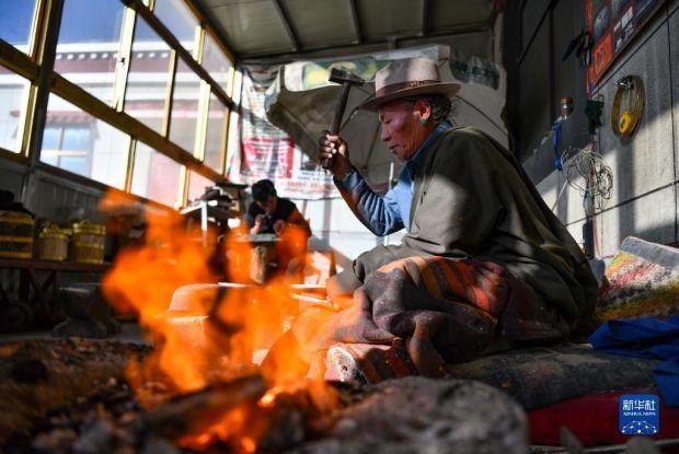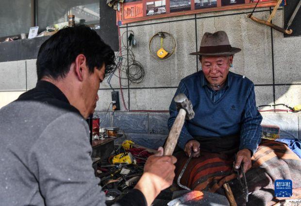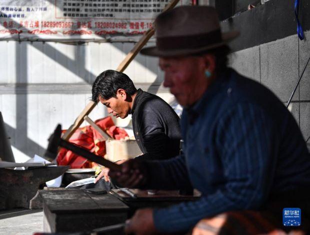 普达瓦在制作拉孜藏刀(1月19日摄)。 新华社记者 晋美多吉 摄
