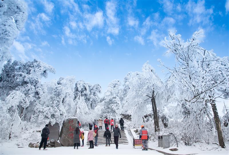 在海拔较高的祥光峰,皑皑白雪覆盖着莽莽群山。沿着山路前行,道路两旁绵延的雾凇雪景如梦如幻。“我的家乡在东北,这里的雾凇和东北很像,但是雪树银花再加上秀美山川有独特的美感。”来自黑龙江的游客伍建国说。据当地旅游部门统计,今年来岳游客中,外地游客的占比达40%以上;30岁以下的年轻游客占比达80%以上。不少人打卡之后还纷纷晒出短视频,很快冲上了由文化和旅游部指导、抖音发起的“春节心动之旅”专项活动综合榜单第一……