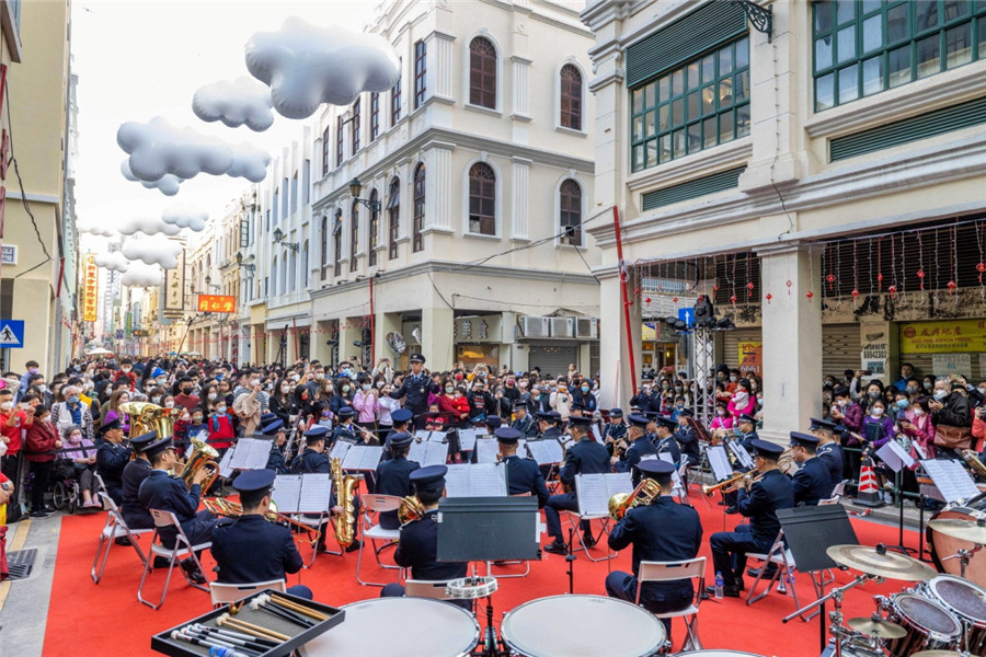 澳门治安警察局银乐队献奏乐曲。澳门文化局供图澳门文化局表示,新马路变身步行街,多角度、全方位展示沿途文物建筑的文化魅力,给“德成按”等老建筑注入新的生机活力,不仅助力文物建筑保护,更丰富文旅融合体验,弘扬澳门作为“以中华文化为主流、多元文化共存的交流合作基地”的多元美学城市形象。