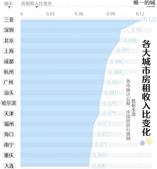 2021年有不少长租公寓“爆雷”,其主要原因是行业管理不规范。但是,房租收入比则出现了不同的变化,各大城市的房租与房租收入比都出现了不同程度的上升。房租收入比变化最大的城市是三亚、深圳、北京和上海,这四座城市都提高了10%左右。三座一线城市租房价格上涨合乎情理,因为居住是刚需,买房的需求降低,租房的需求不变,甚至会上升。