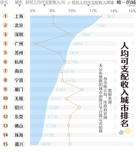 经济水平的高低,是人们对一座城市最直观的感受。人均可支配收入是一个人最终用于消费支出和储蓄的总和,是衡量一座城市居民收入水平的重要标准。