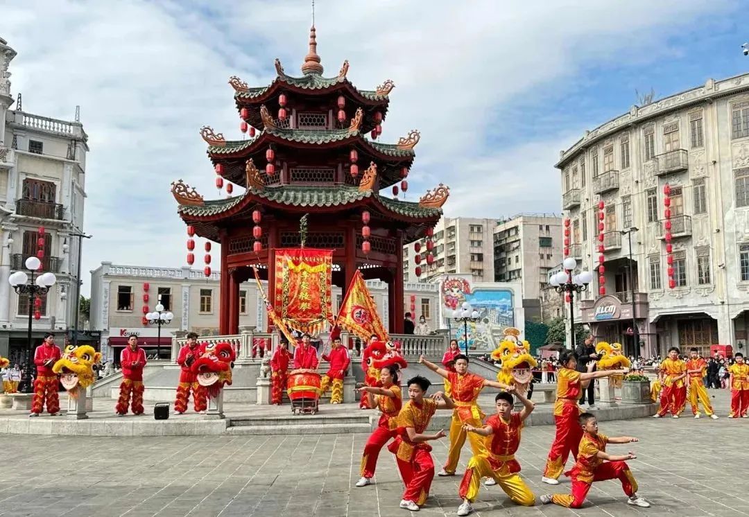 这个春节,小公园开埠区年味浓厚,大年初一至初六,节气鼓、醒狮、英歌舞等精彩巡游轮番上演。大年初六上午,市级非遗李家教拳传承中心40名青少年为市民游客献上节目《传承少年》,通过拳术、大刀、霸王枪、集体李家教拳等的精彩展演,展示潮汕武术文化和健康向上的精神面貌。春节假期的最后一天,小公园依然热度不减,慕名而来的游客里三层外三层围观表演,大家竞相拍照合影,喜气洋洋。