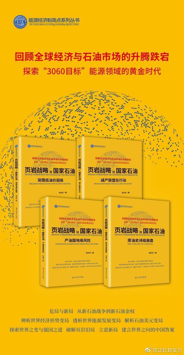 【作者简介】邓正红,中国软实力之父,创立邓正红软实力思想,建立企业软实力理论和软实力指数工具,开创能源软实力和低碳软实力,第一个对软实力系统量化与价值评价,拥有基于企业、城市、国家之软实力指数与软实力价值评估计算一整套自主知识产权,独家发布企业(世界软实力500强、中国上市公司软实力100强)、城市(中国内地城市和地区软实力排序、中国国家高新区软实力排序)和国家(全球软实力100强)三大软实力排行榜,国家电网《企业软实力丛书(核心价值、核心模式、核心实力)》总策划及撰稿人。18个月前精准预言2020年3月国际油价暴跌,参与国家能源局页岩油发展研究,为形成符合我国特色的页岩油发展思路提供了有益参考。出版《页岩战略:美联储在行动》《页岩战略Ⅱ:非常规变革》《页岩战略Ⅲ国家石油(突围低油价困局、减产联盟在行动、产油国地缘风险、原油史诗级崩盘)》《软实力:中国企业的破局之道》《巧实力:竞争环境下的聪明策略》《再造美国:美国核心利益产业的秘密重塑与软性扩张》《大国互联:上市与较量》《低碳创新:绿色潮流下的获利方法》《绿公司:低碳商机操作指南》等著作。