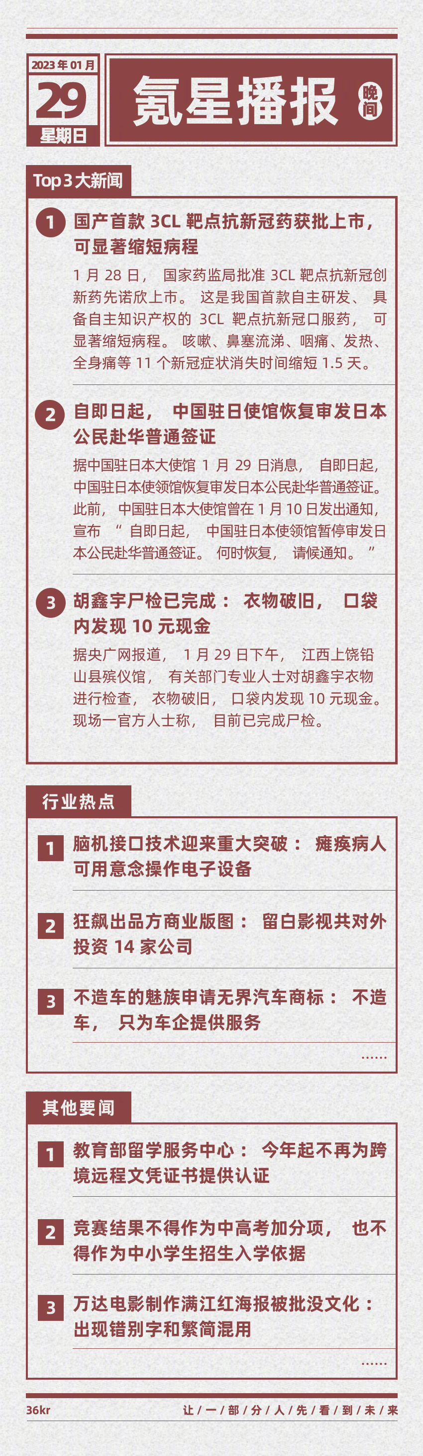 氪星播报|1月29日晚间都有哪些今日大事件?
