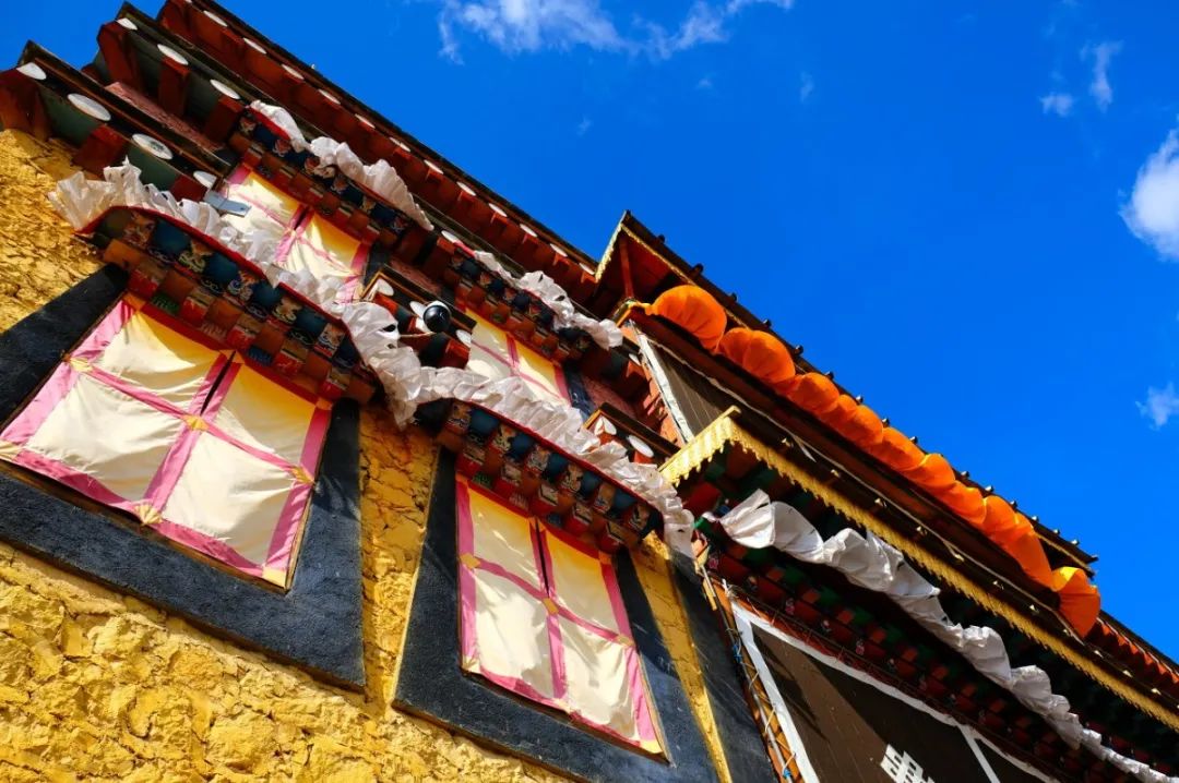 新年来临,身着盛装的藏民们会沿顺时针方向转经,把祝福和期望留在这块圣土上。广场前还有歌舞表演和节庆活动,热闹非凡。