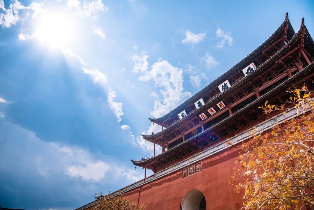 在建水,你可以去到建水地标之一朝阳楼,它的历史比天安门还早28年,但整体造型却和天门无二,朝阳楼高三层,三重屋檐,经历过战争、地震但依旧屹立不倒。