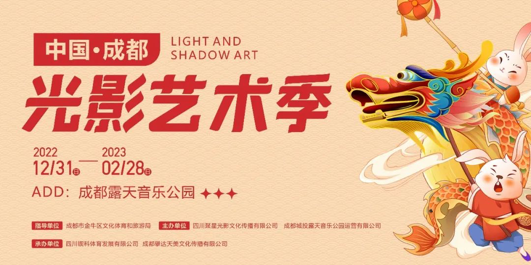 新年伊始,万象更新,2023中国成都光影艺术季升级改造完成,1月13日正式恢复开放,亮相成都露天音乐公园。暖阳下,赏花露营品美食、夜游十里彩灯音乐、激情乐队嗨翻全场、电音DJ冬夜狂欢、绚丽光影等你闹新春!
