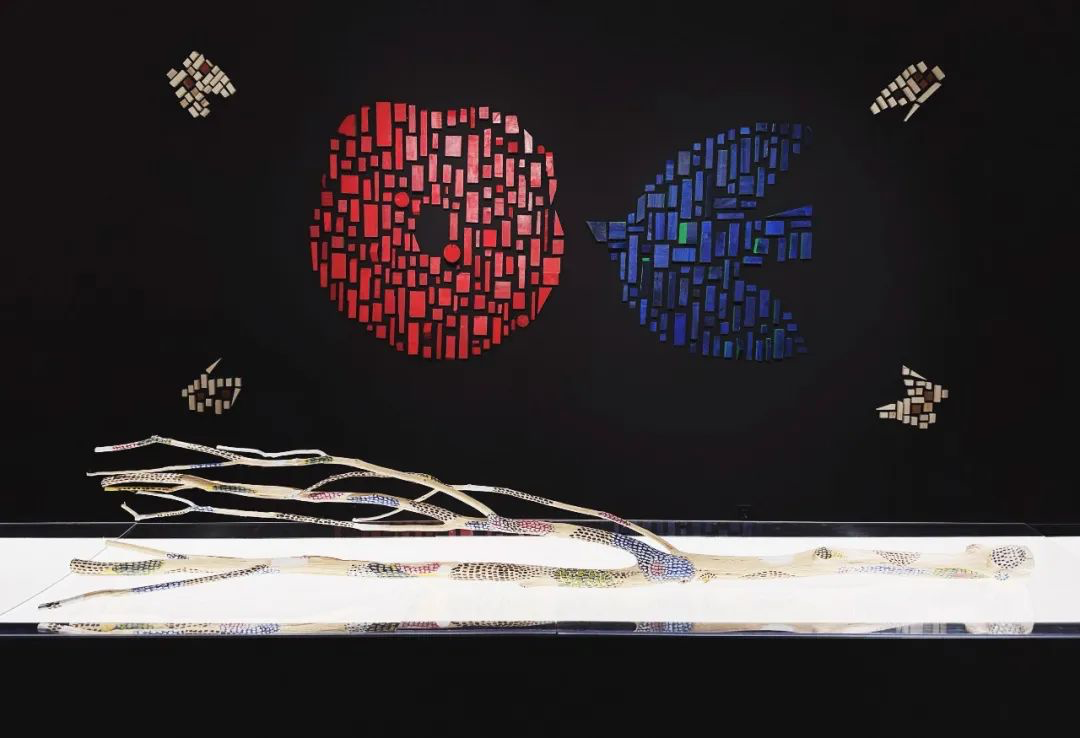 于平惠子将色彩与木交融而成的神秘感,也可以是廖晨辰用刻刀破坏后带距离的美。两位艺术家用自己的绘画方式共同创作了展厅入口处的艺术装置。