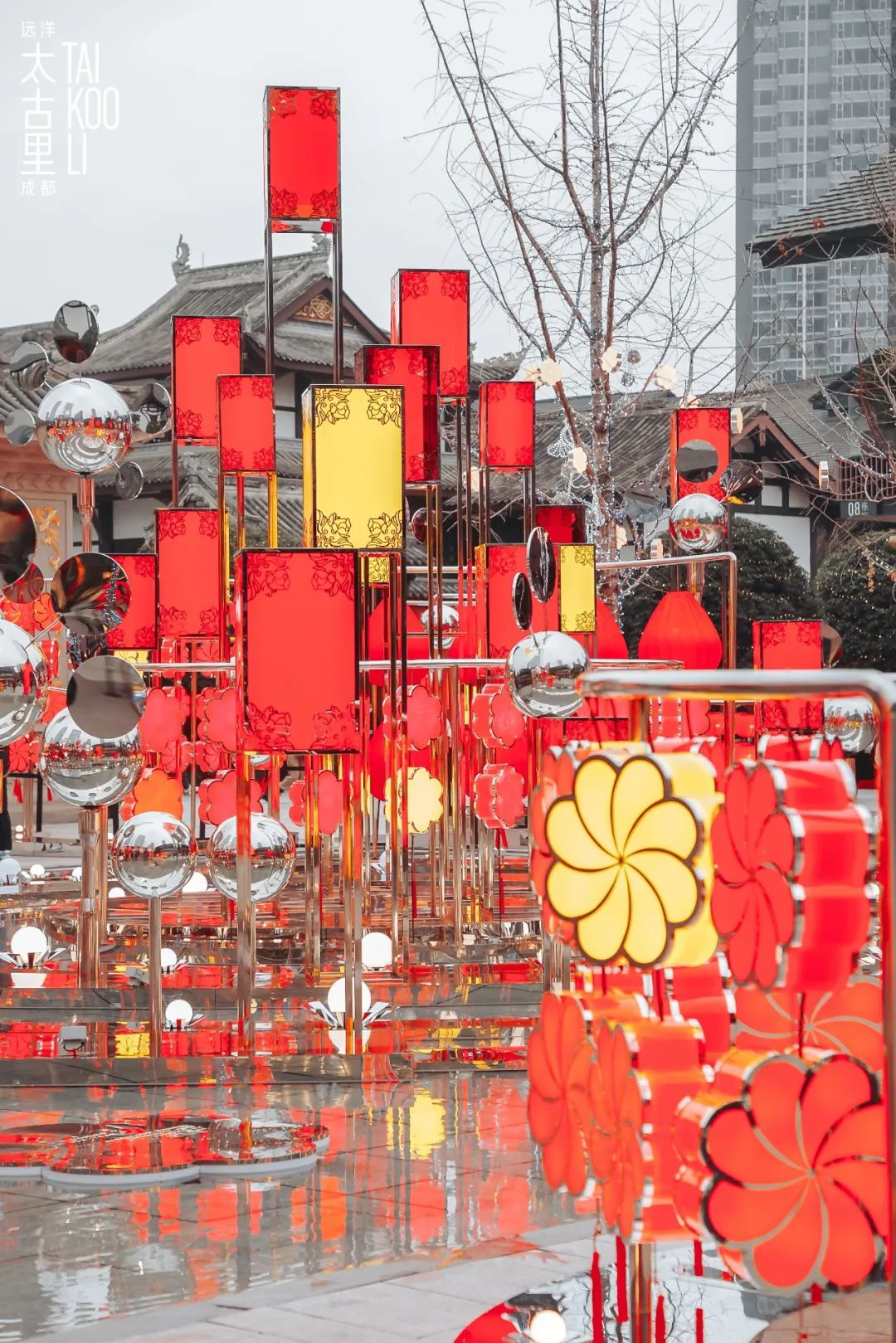 2023年1月13日到2月6日,成都太古里新春主题活动“福蓉新春A Blooming New Year”正式开启。融合传统文化与现代美学的新春主题公共艺术装置于漫广场水面璀璨盛开。芙蓉出水,锦色满城,一朵朵花灯升腾而上,好比春意绚烂绽放,由此点亮对新春佳节的美好祝福。