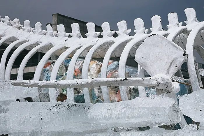 最具震撼力的,是鲸鱼腹腔中若隐若现的海洋垃圾,以直观的视觉冲击,引发人们对保护海洋环境的思考。“冰雕融化”的艺术手法,也将海洋垃圾制造成为另一种奇观,为品牌立意、为环保发声。