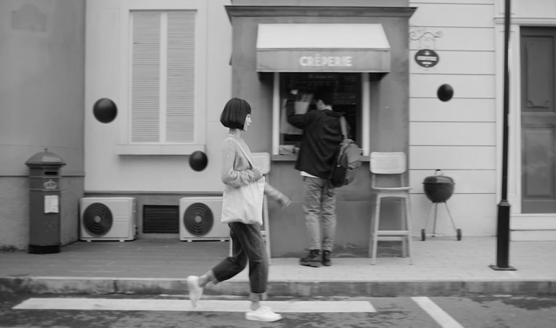 贯穿全片的“黑色球体”,也是打开黑白世界的二氧化碳气体。通过漂浮在家用电器、出行工具、咖啡纸杯等物体上方的形式,于衣食住行与呼吸之间穿梭,让低碳环保理念也不再“口号化”。