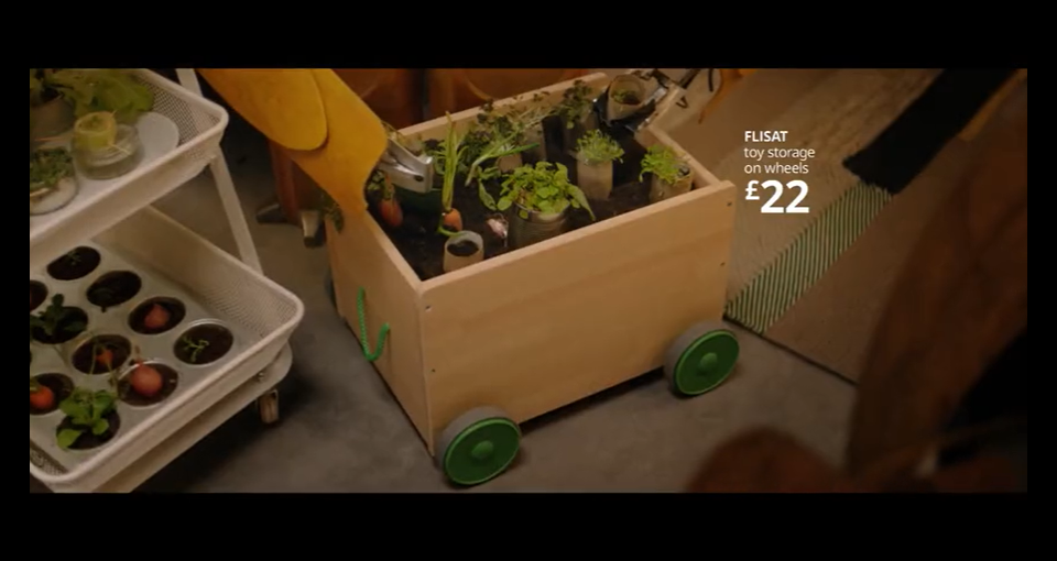 机器人拖着小小的身体回家,才发现家里原来如此温馨:放植物的罐子、可循环使用的网袋、手推车里种植蔬菜……这一切绿色的、美好的、治愈的事物,都能在宜家拥有。