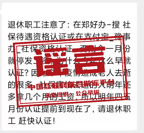 近日,全国多地网传“退休人员必须在2023年1月完成待遇资格认证,否则将会停发待遇”等信息。