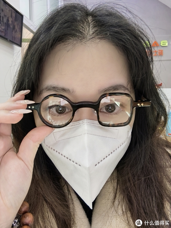 这款眼镜真的是很特别,但是一边是圆的,一边是方的,就是一个不对称的一个设计,在普通的眼睛里面真的是一眼就能看到他,不过有一点不好,就是他的这个框框比较小,不太适合眼睛大的眼睛,大的人带的话可能就超不过他那个框的那个圈的范围了
