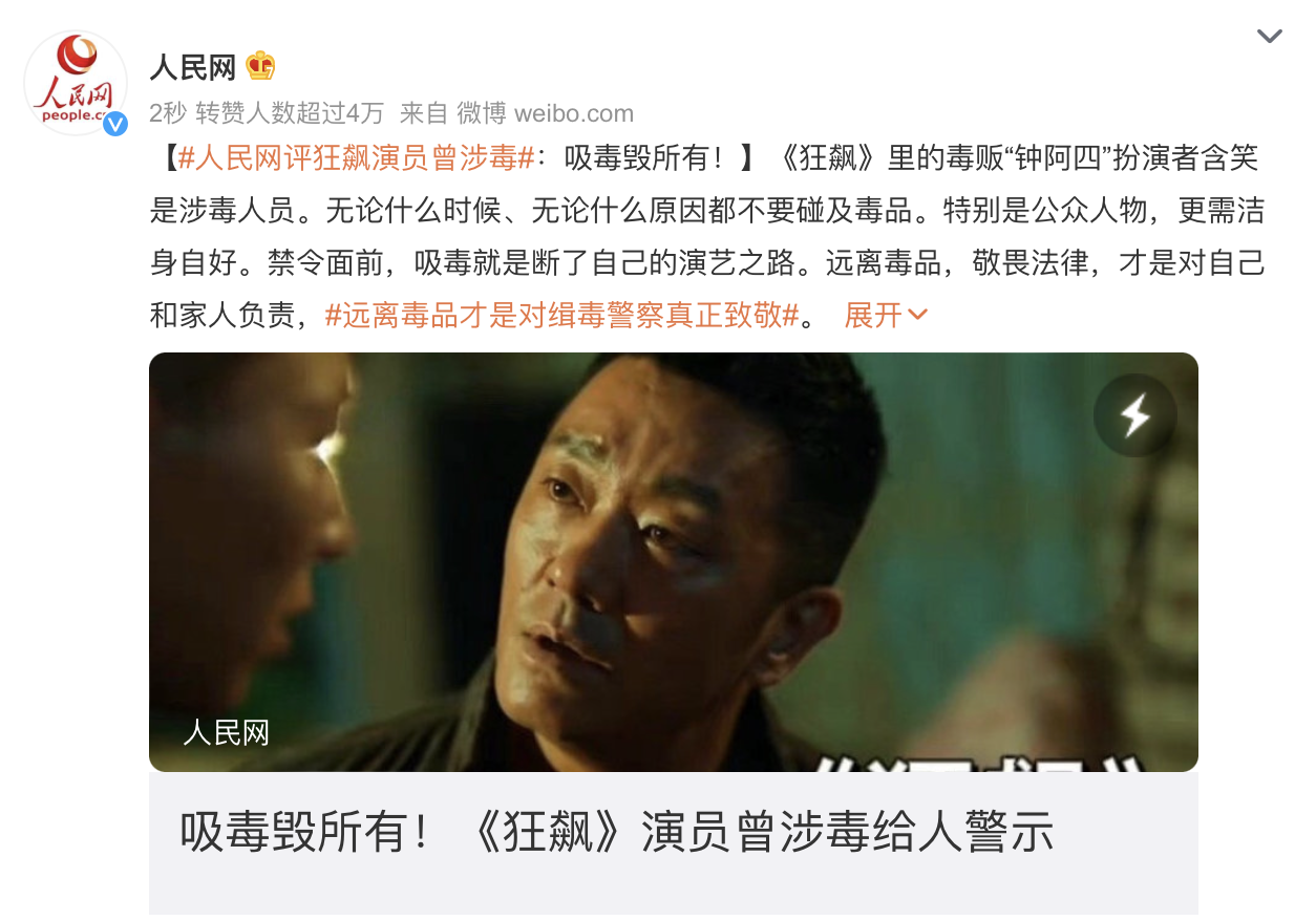 零容忍!人民网中新网发文评论《狂飙》演员涉毒事件