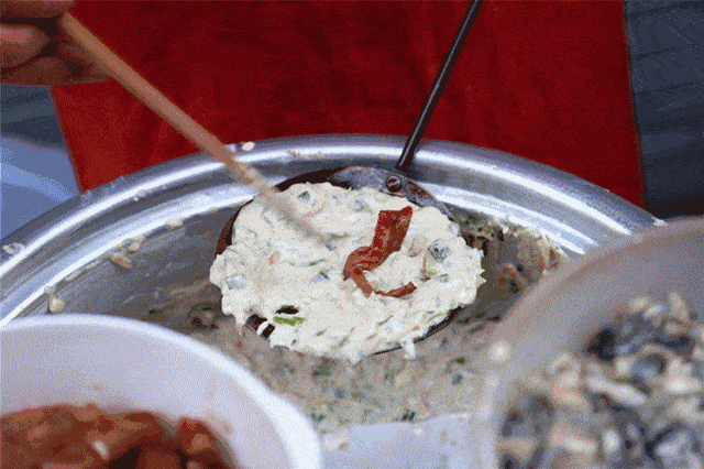 浇上热汤,加上酸笋的米粉,在嗦螺蛳的食客口中,一嗦一口,香出了境界,久而久之,螺蛳粉便诞生了。