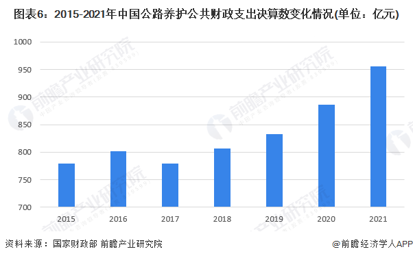 在非收费公路方面,公路养护资金主要依赖于财政资金。从全国公路养护公共财政支出决算数据来看,2015-2021年整体呈现波动增长变化,复合增速约3.5%,到2021年全国公路养护公共财政支出决算数突破950亿元,比2020年增长7.8%。