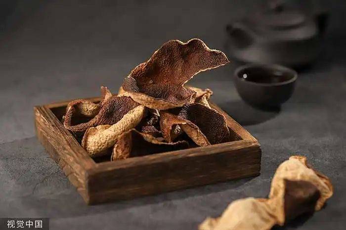 陈皮并非简单一块风干了的橘子皮。以陈皮界历史积淀较久、江湖地位最高的新会陈皮为例,它主要由茶枝柑的果皮晒干陈化后制成。