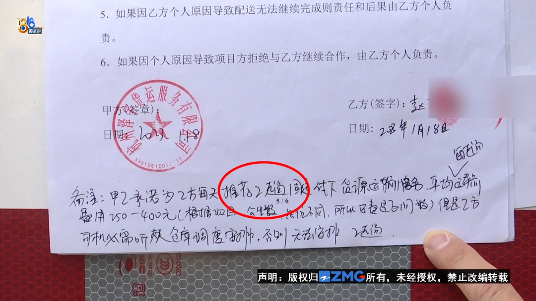 赵师傅:服务协议就是,每天推荐我两趟,一趟是250到400块,一趟时间在4个小时以内。