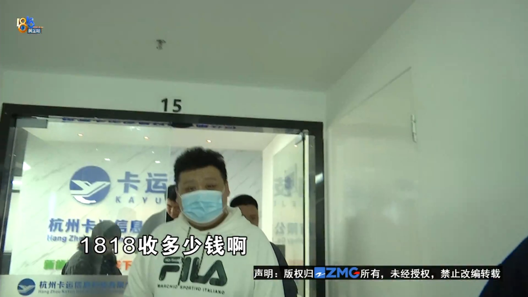 赵师傅带着记者找到了杭州拱墅区天邑国际大厦里面,说是当时签合同的地方。记者看到,门上贴了“杭州卡运信息科技有限公司”的字样,里面的办公室门上,又有“泽宇货运”的字样。