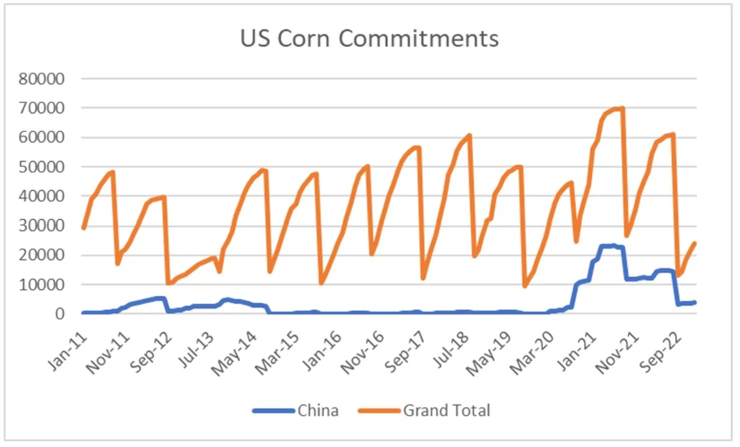 由于养猪户不再愿意养猪,因此必然会发生以下两种情况之一,玉米价格必须下跌,否则生猪价格将上涨。当我们观察玉米市场时,我们看到中国已成为美国玉米的主要买家。