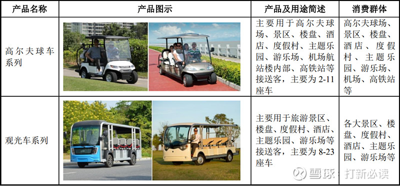 公司主要产品为场地电动车系列产品,根据产品用途的不同主要有高尔夫球 车、观光车、电动巡逻车、电动货车等系列。