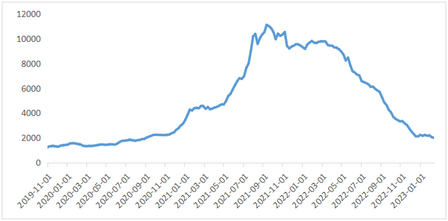 劳动参与率恢复较慢是主要原因。我们曾在《四十年一遇美国大通胀:对中国的影响及对策分析》一文中对导致美国通胀大幅上升的原因进行过分析。从目前主要因素的变化来看,全球供应链中断的情况已经明显缓解,波罗的海货运指数(FBX)大幅回落(图1)。然而,另外一个重要原因,即美国劳动参与率较新冠疫情暴发前下降的困扰仍然存在。2023年1月,美国劳动参与率较2022年12月提升0.1个百分点至62.4%,但仍低于新冠疫情暴发前。据布鲁金斯学会(Brookings Institution)估计,有1600万年龄在18-65岁之间的美国人患有“长期新冠”(long COVID),使得200万到400万美国人无法工作。由于劳动力市场供不应求,工资存在上涨压力,对服务通胀形成支撑。1月美国服务通胀飙升至40多年来的最高水平,进而阻碍了整体通胀放缓的步伐。