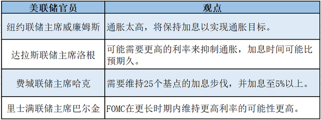 美联储本轮加息的终点利率可能会比此前的预期更高,并在高点持续较长时间。
