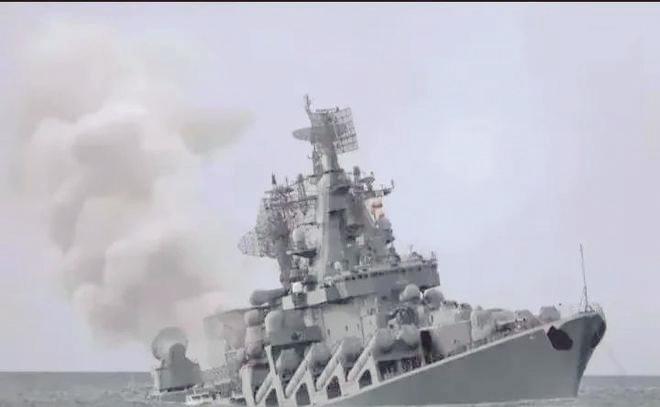 莫斯科号巡洋舰起火、下沉。