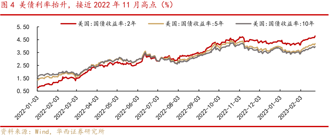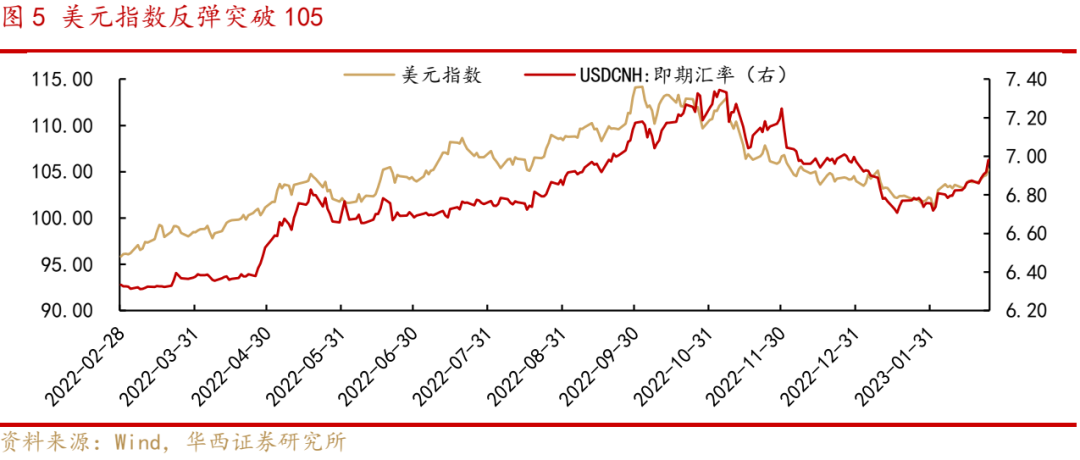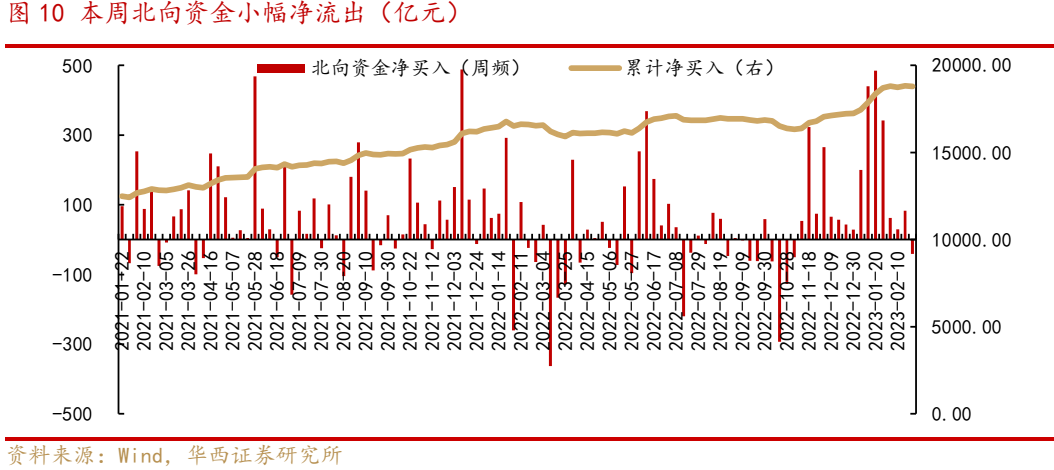 1月美国通胀数据回落不及市场预期,且美国经济活动表现也好于预期。美联储2月会议纪要显示,与会者认为近几个月来就业增长强劲,失业率仍然很低,通货膨胀有所缓解,但仍居高不下,再次显示出重申抗通胀的决心。投资者对美联储的加息路径预期继续调整,使得全球权益市场波动率抬升。美债收益率持续上行,目前已接近2022年11月高点;美元指数反弹使得人民币汇率承压,北向资金呈现小幅净流出。