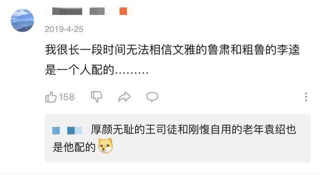 网友说很难相信,文雅的鲁肃居然和粗鲁的《水浒传》李逵是同一个人配音。