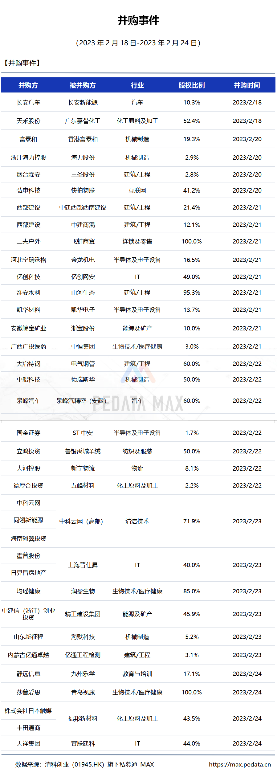 清科创业(01945.HK)私募通 MAX 统计:截至本周五下午,本周并购市场共发生32起并购事件,披露的交易金额为77.51亿人民币。