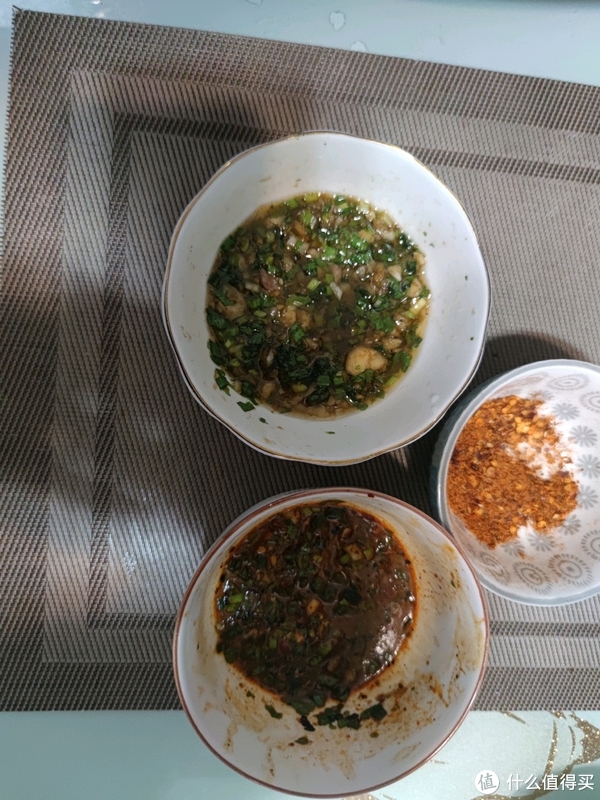 准备一下味道的主要来源,有糊辣椒乳腐沾水,有香油蒜末沾水,还有一个烧烤辣椒面干沾水。这样安排,吃辣的和不吃辣的,都皆大欢喜。