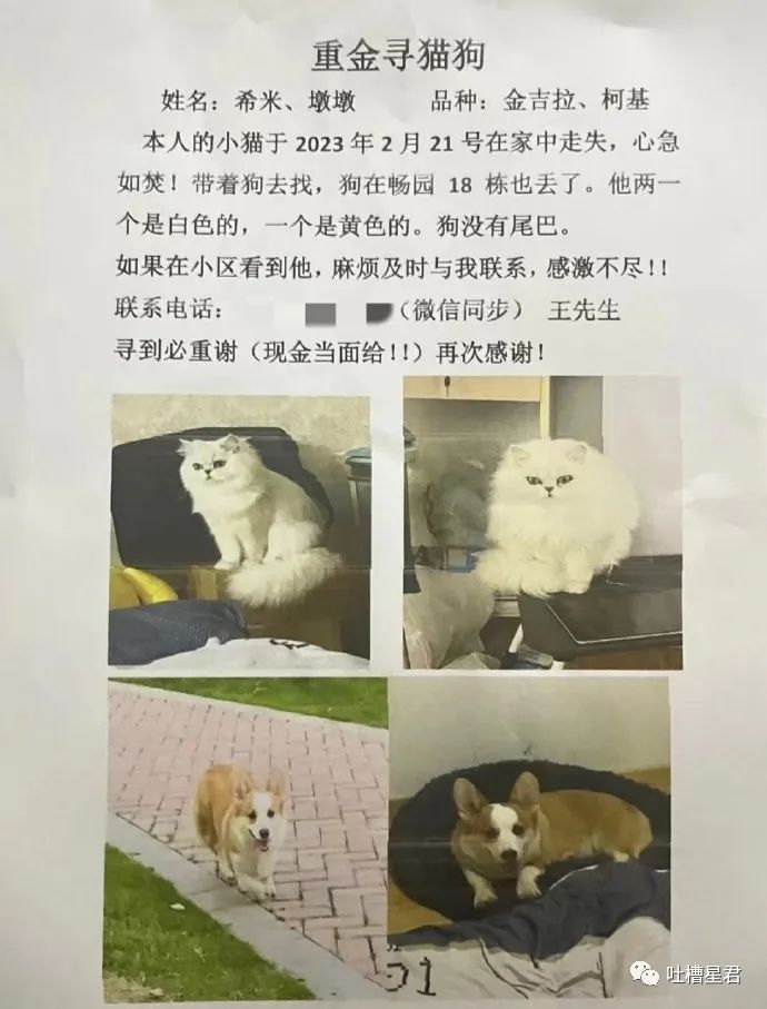 在电梯里看到的寻猫启事: