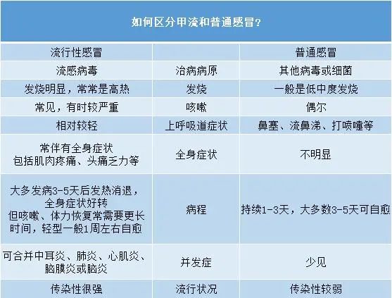 我们平常感染的普通感冒,指以打喷嚏、咽痛、咳嗽、低热、头痛和不适为表现的一类疾病,通常症状轻微而且多数能够自己恢复。然而流感一般表现为急性起病、发热(部分病例可出现高热,达39-40℃),伴畏寒、寒颤、头痛、肌肉、关节酸痛、极度乏力、食欲减退等全身症状,常有咽痛、咳嗽,可能有鼻塞、流涕、胸骨后不适、颜面潮红,结膜轻度充血,也可能有呕吐、腹泻等症状。