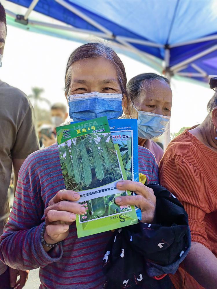 农户开心地领取到免费农产品种子