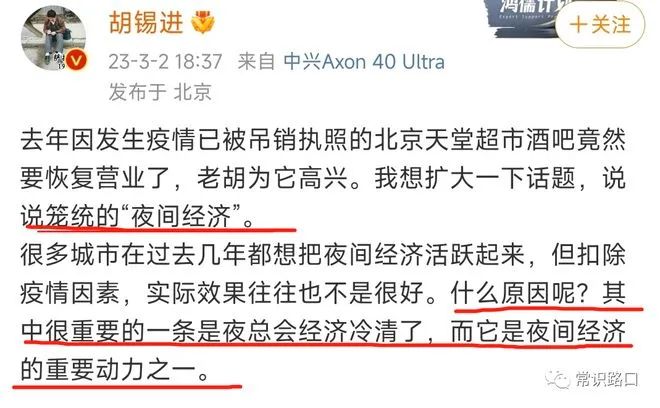 这把老胡给吓的,赶紧把文给删了,毕竟被扣上一顶“声色犬马”的帽子可不好受。不过这些指责老胡的人恐怕也没那么单纯,看到“夜总会”三个字脑子就往歪处想,有点过于敏感了。