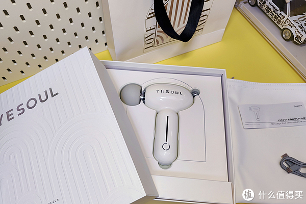 打开包装盒,印入眼帘的就是一个精致圆润的筋膜枪,通体洁白如玉再镶嵌上银色的饰条,确认过眼神,这是我老婆喜欢的款式。