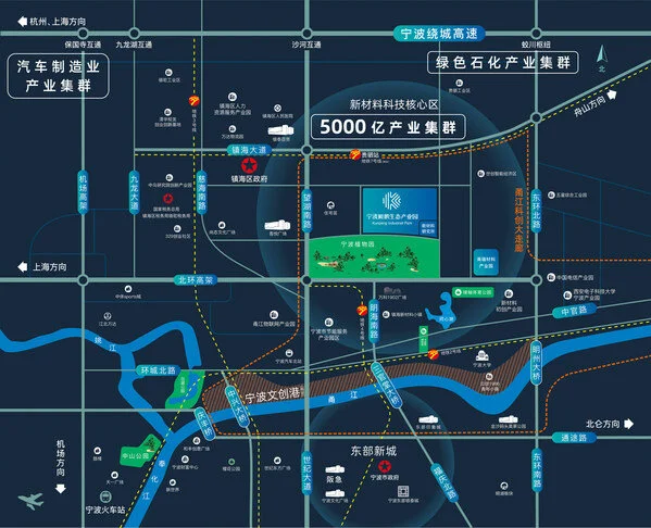 项目位于宁波市政府重点打造的宁波高新区新材料科技城内,行政归属于宁波高新区,地理位置位于镇海核心,坐享双区域规划利好。