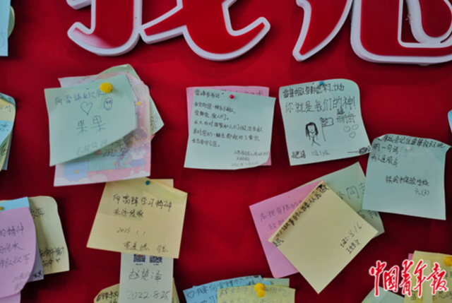 辽宁省抚顺市,雷锋纪念馆内参观者留言便利贴。(拍摄于2023年3月1日)