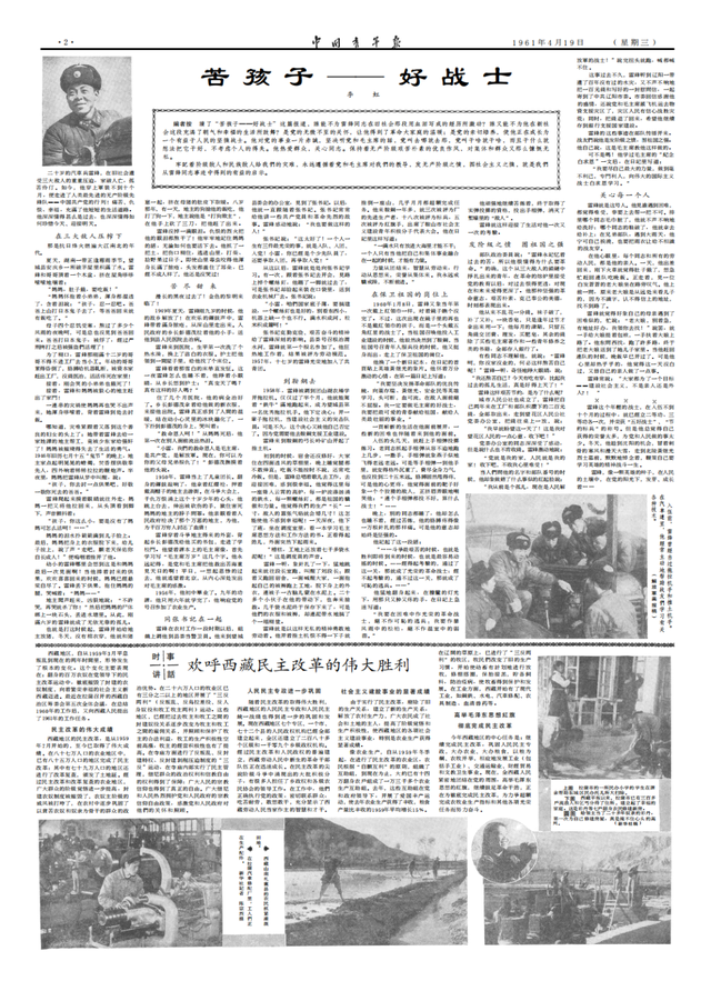 1961年,《中国青年报》刊登介绍雷锋事迹的长篇通讯《苦孩子——好战士》,其后,又陆续发表了《雷锋日记摘抄》等。