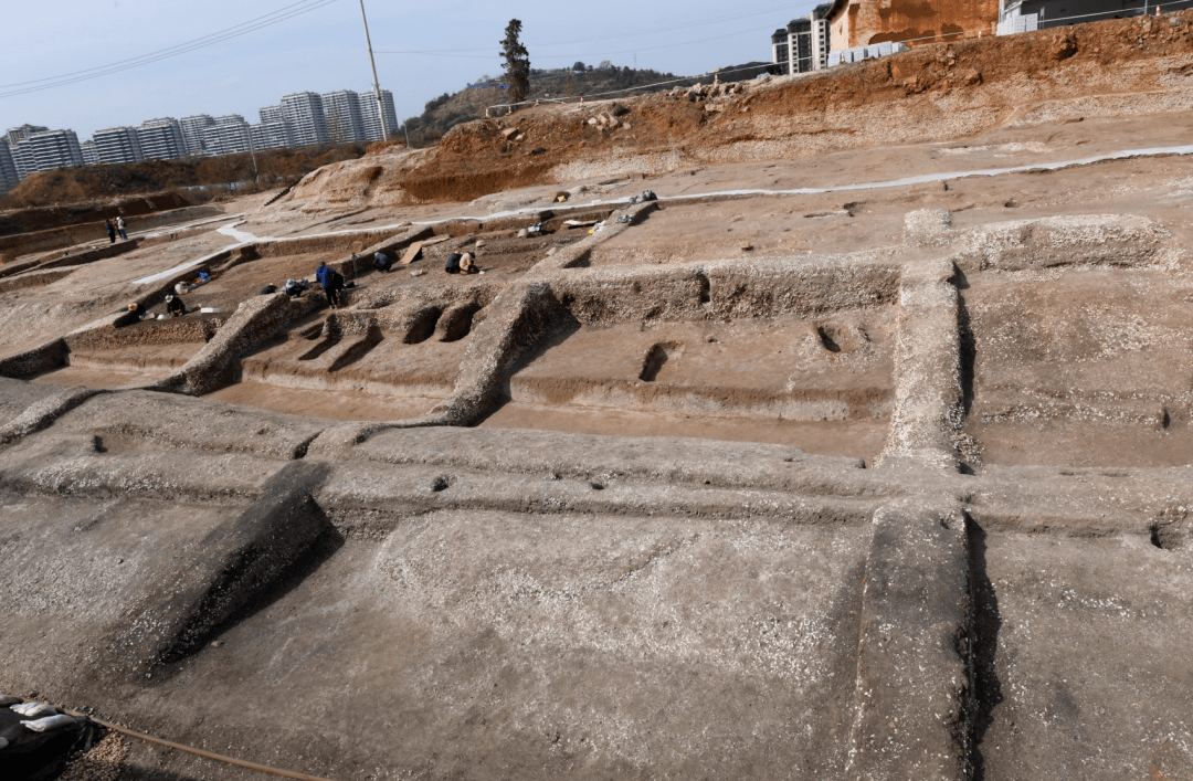 2020年以来,距离石寨山古墓群8公里处,古城村遗址发掘出保存完整的商周时期环壕聚落,这也是云南目前已知保存最完整的先滇时期环形贝丘遗址。目前,在对古城村遗址的两次发掘中,共发现壕沟、护坡、土坑墓、瓮棺葬、栈桥、房址、灰坑、螺壳坑等商周至明清时期的各类遗迹1000多处,出土青铜器、陶器、玉器、石器、骨器、木器等各类文化遗物4000余件,通过浮选和湿筛采集到大量碳化植物种子、果核、鱼骨、铜渣等。这再次证明,至少在距今3000多年前,滇文化就已存于此。