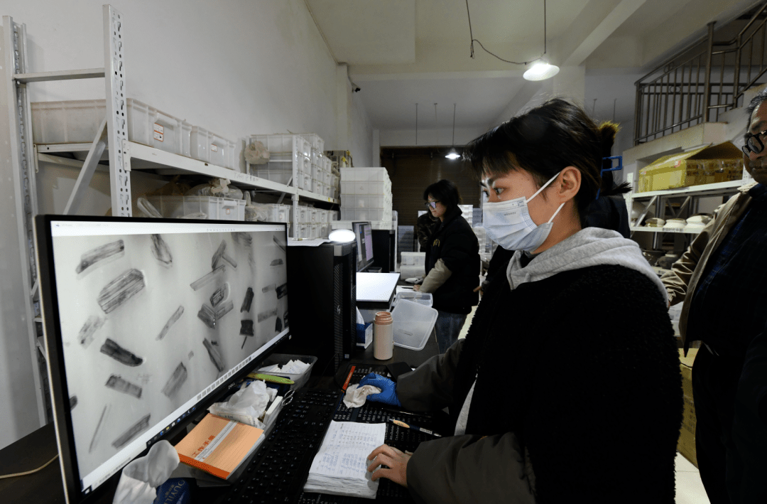 这批带泥简牍有1100多箱,已全部完成清理,清理出的简牍90%已完成扫描,发现有字简牍1300多枚、无字简牍1万余枚,已辨认出“滇池以亭行”“建伶”“始元四年”等文字。