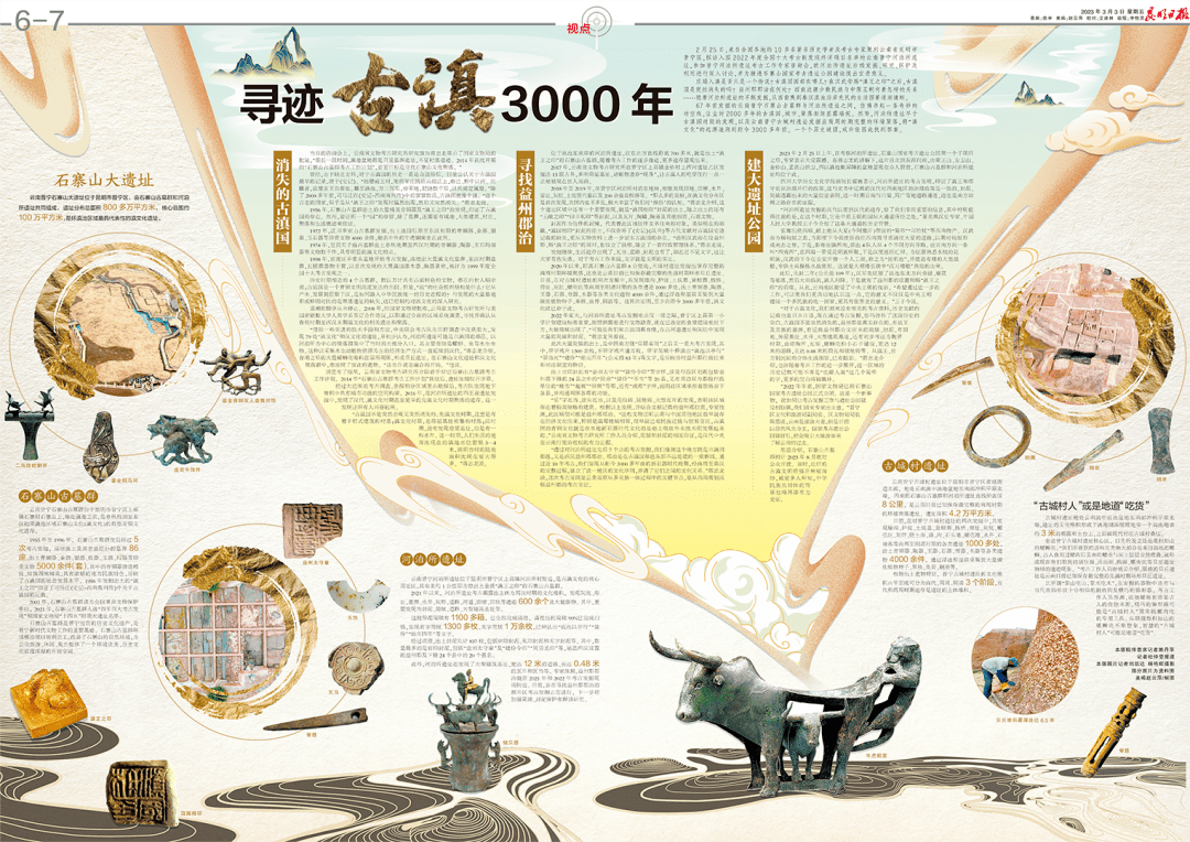 67年前发掘的云南晋宁石寨山古墓群与河泊所遗址之间,仿佛串起一条奇妙的时空线,让尘封2000多年的古滇国、城市、聚落渐渐显露端倪。然而,河泊所遗址早于古滇国时期的发现,以及云南晋宁古城村遗址发掘出商周时期完整的环壕聚落,将“滇文化”的起源追溯到距今3000多年前。一个个历史谜团,或许能因此找到答案。