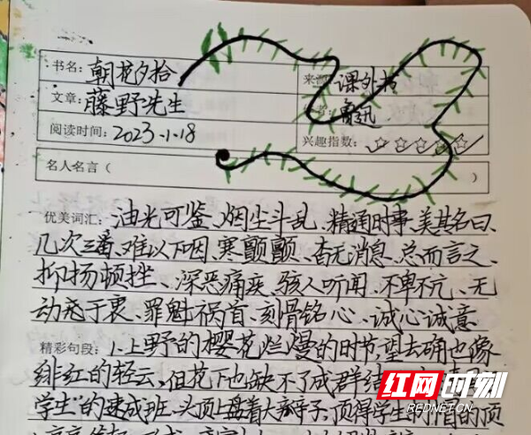 红网时刻新闻3月8日讯(通讯员 邓华 欧阳亚琦)学以明理,阅以明志。随着“双减”政策的有效实施,为倡导师生阅读、提升文化素养、推进素质教育,汝城思源红军小学以“读书、启智、明理、做人”为主题,以“阅读积累”为突破口,以丰富多彩的读书活动为载体,举办“校园阅读”活动之寒假读书笔记评比活动。
