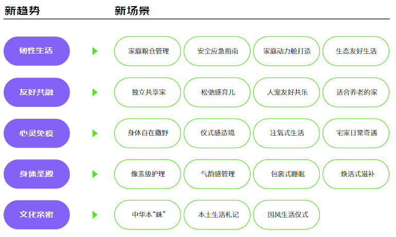 京东从消费者需求角度,总结了五大消费新趋势,分别是:韧性生活、友好共融、心灵免疫、身体圣殿、文化亲密。
