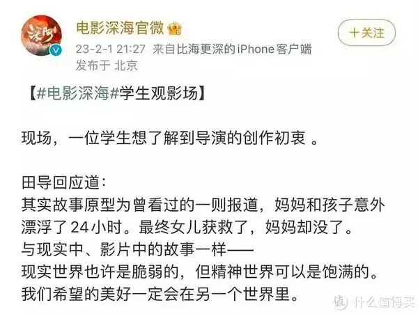 导演田晓鹏在路演中说过,《深海》的故事原型是他看过的一则报道,妈妈和女儿漂浮了24小时,最后女儿获救,妈妈不在了。