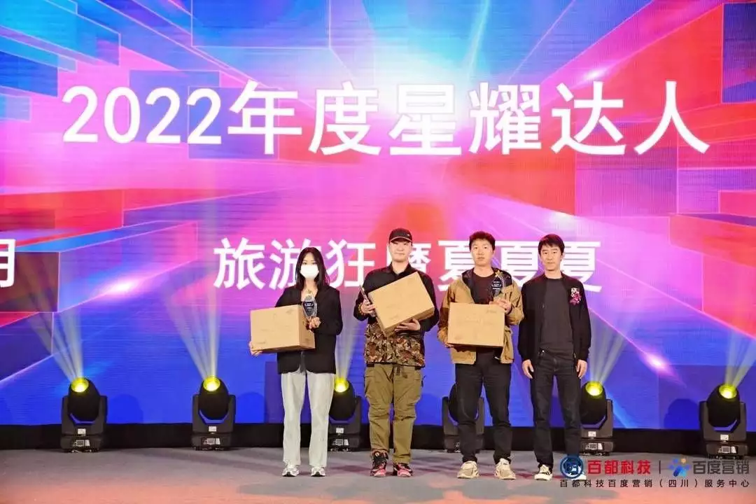 百度百家号联合众多达人,创作优质内容,为百度提供源源不断的内容生态输出。活动现场也为川香秋月、奔跑的小东东、旅游狂魔夏夏夏三位四川地区优质内容创作者颁发了“2022年度星耀达人奖”。