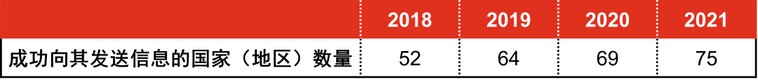 表4:过去4年中国成功向其发送信息的国家(地区)数量(单位:个)